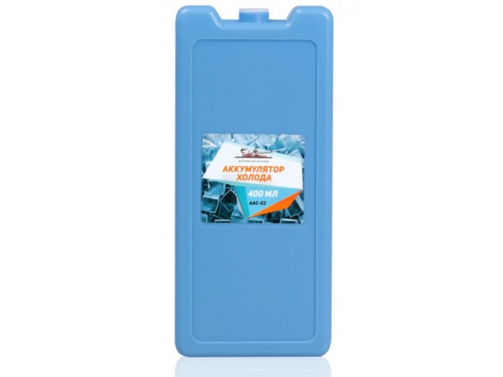 Аккумулятор холода с увеличенным объемом 400 мл. Аккумулятор холода представляет собой пластиковый контейнер, заполненный веществом с большой теплоемкостью. Аккумуляторы холода применяются, как основные охлаждающие элементы в сумках-холодильниках, и позволяют удерживать оптимальную температуру, при которой продукты не будут портиться. Перед тем, как отправиться в путь, аккумуляторы холода помещают в морозильную камеру, в которой вещество долгое время охлаждается до нужной температуры (10-12 часов). После этого аккумулятор, помещенный в сумку, способен долгое время забирать тепло. Функции активного вещества здесь выполняет раствор карбоксиметилцеллюлозы, воды и глицерина. Расчетное количество аккумуляторов необходимых для поддержания температуры в термосумке-200 мл на каждые 6 литров объема.