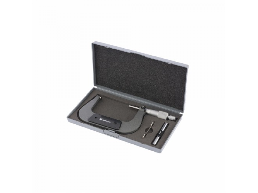 Микрометр изготовлен из инструментальной стали. Имеет форму скобы. Основным рабочим элементом является микрометрическая головка. Упакован в пластмассовый кейс. Предназначен для особо точных измерений.