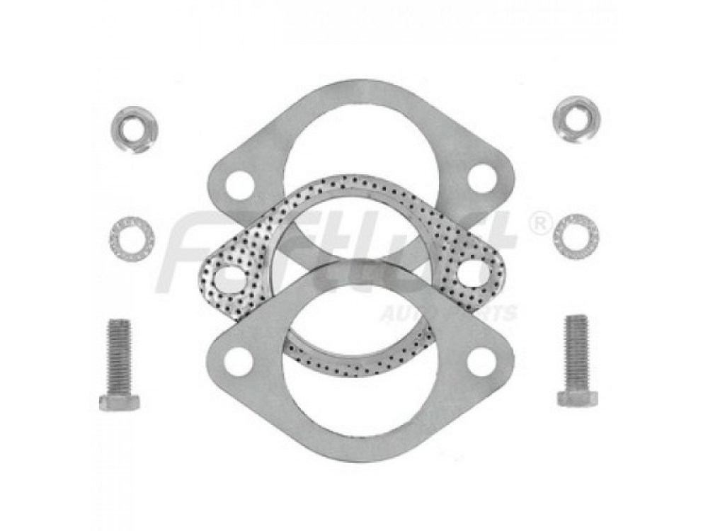 Фланцевое соединение является одним из самых основных соединений компонентов выхлопной системы. Один фланец приваривается к одной части выхлопной трубы, другой к ответной и соединяется болтами через прокладку. Толщина фланца 8мм, изготовлен фланец из нержавеющей стали, что обеспечивает долгосрочный срок эксплуатации.