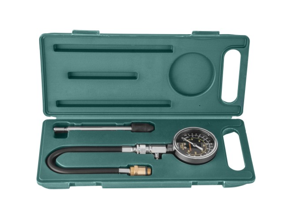 Прибор для диагностики работоспособности и обнаружения неисправностей цилиндро-поршневой группы и газораспределительного механизма бензиновых двигателей внутреннего сгорания. Изделие комплектуется 64-миллиметровым манометром, имеющем шкалы градуировки до 21 кгс/смкв. в различных величинах: psi, Bar, кгс/смкв., ниппельной насадкой, длиной 150 мм, гибким шлангом, длиной 325 мм с двумя резьбовыми адаптерами для свечных отверстий М14 и М18. Прибор используется для диагностики двигателей с осложненным доступом к свечным отверстиям и двухвальных двигателей, с расположением свечных отверстий в "колодцах"