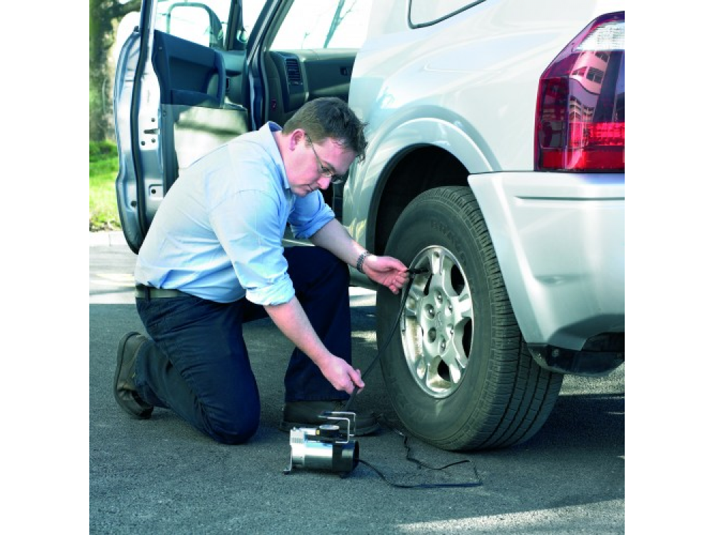 Воздушный компрессор, в прочном металлическим корпусе, идеально подходящий для использования на микроавтобусах, легких коммерческих автомобилях, автомобилях 4x4. Накачивает 13-дюймовую шину с нуля, менее чем за 4 минуты и получает питание непосредственно от автомобильной 12-вольтовой розетки. Прочный металлический корпус и противовибрационные опоры делают этот надежный компрессор идеальным для использования. Поставляется с комплектом переходника клапана и футляром для хранения.
