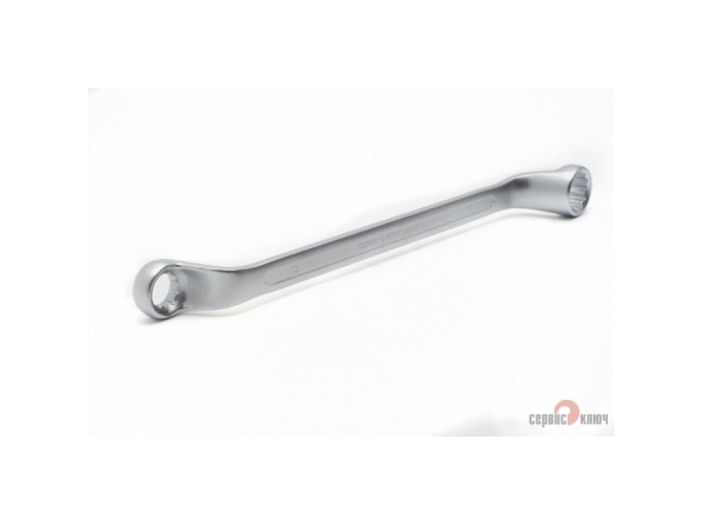 Двусторонний накидной ключ со смещением. Имеет на обоих концах 12-гранные накидные профили. Накидной профиль со смещением предоставляет более широкие возможности при работе в ограниченном пространстве. Изготовлен из высококачественной хромованадиевой (Crv) стали методом холодного штампа, тверность 40-45 HRC.