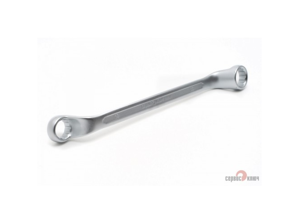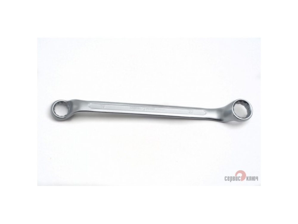 Двусторонний накидной ключ со смещением. Имеет на обоих концах 12-гранные накидные профили. Накидной профиль со смещением предоставляет более широкие возможности при работе в ограниченном пространстве. Изготовлен из высококачественной хромованадиевой (Crv) стали методом холодного штампа, тверность 40-45 HRC.