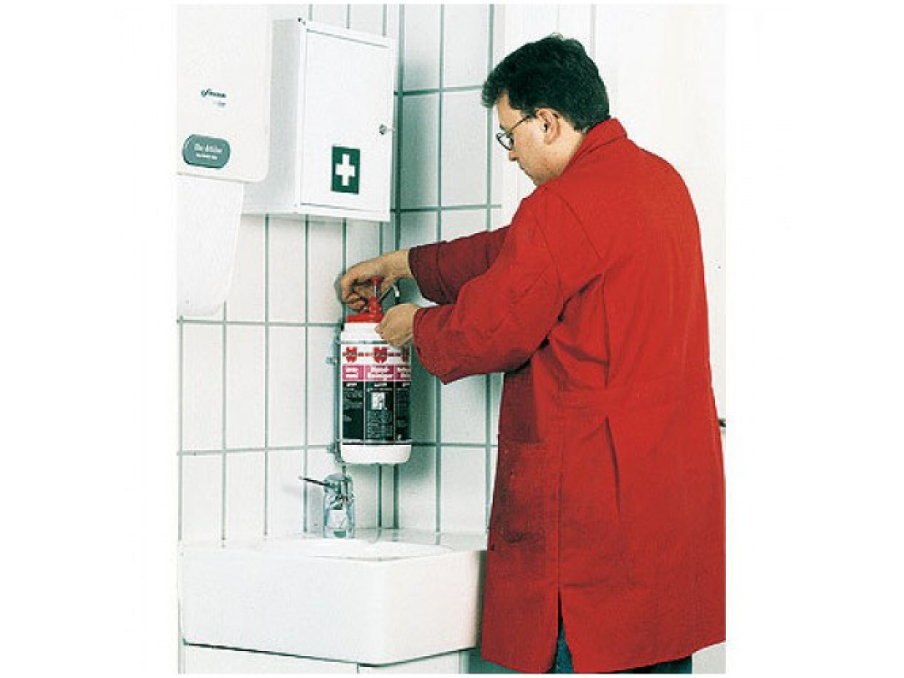 Нанести на руки 3 см? очистителя (рекомендуется использовать дозирующую систему арт. 0891.901), втереть в кожу рук массирующими движениями, смыть водой.