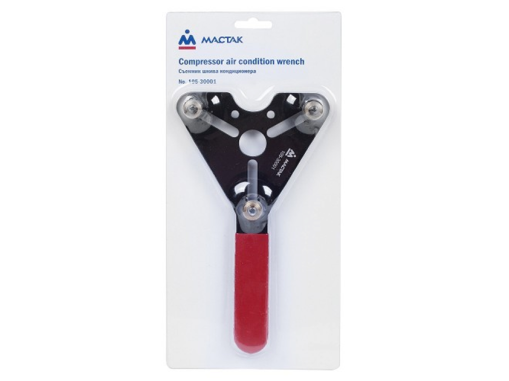 Съемник шкива кондиционера, МАСТАК 105-30001 предназначен для фиксации шкива компрессора кондиционера GM R-4 во время установки/снятия центральных болтов. Также применяется при демонтаже и монтаже фрикционных дисков марок GM, Warner, Pitts, Ogura.