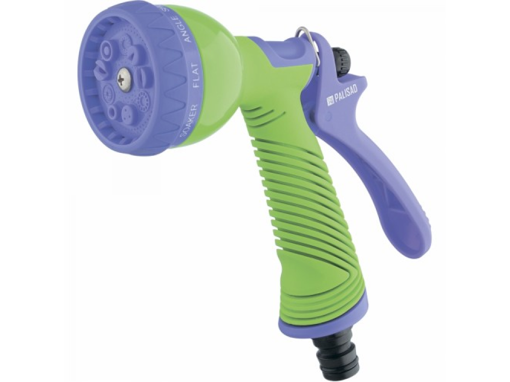 Эргономичный пистолет-разбрызгиватель с курком в современном исполнении из надежных пластиковых элементов. Конструкция обеспечивает прочность и простоту в эксплуатации. Удобно держать в руке. Предусмотрено 9 режимов подачи воды с плавной регулировкой напора: от сильной струи до мелкодисперсного распыления, в зависимости от поставленной задачи, также предусмотрена полная остановка подачи воды. Управление легко осуществляется с помощью одной руки. Совместим со всеми элементами системы полива «PALISAD LUXE» и «PALISAD».