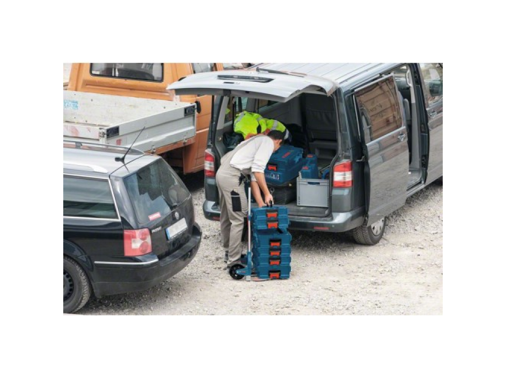 Безопасная транспортировка кейсов BOXX благодаря боковым стойкам на опорной поверхности и эластичной ленте для фиксации