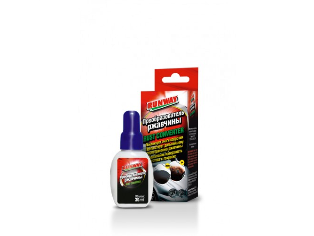 Профессиональный состав для борьбы с ржавчиной и локализации очагов коррозии. По мнению экспертов, является наиболее эффективным антикоррозионным составом на рынке автохимии США. Преобразователь быстро проникает в микротрещины и поры металла, останавливая там процессы коррозии и предотвращая распространение ржавчины по поверхности металла. В течение нескольких минут нейтрализует ржавчину и преобразует ее в плотный черный грунт готовый к покраске. Поверх преобразователя могут наноситься различные краски, эмали, лаки (кроме красок на водной основе), а так же всевозможные эпоксидные составы.Преобразователь может применяться для любых металлических поверхностей (кроме гальванизированных) и имеет множество применений в быту и промышленности.