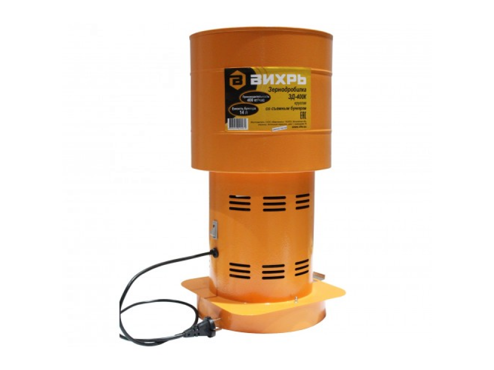 Зернодробилка ВИХРЬ ЗД-400К предназначена для переработки всех видов сухого фуражного зерна, включая масленичные культуры и другой подобной сельскохпродукции при подготовке кормов для животных и птиц.