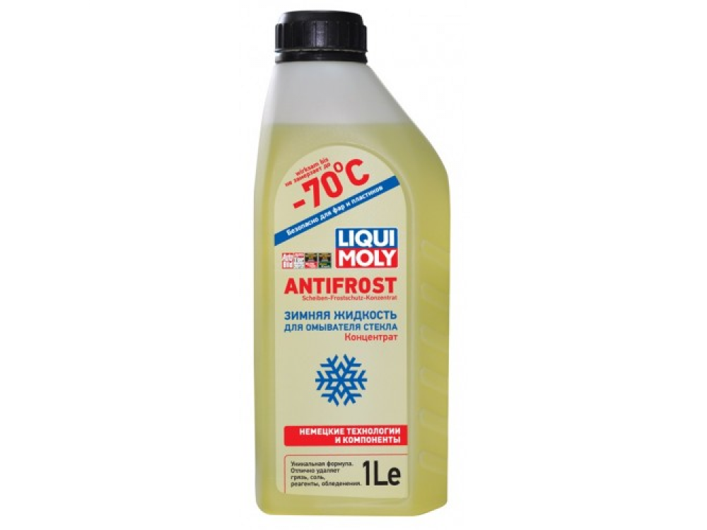 Зимняя жидкость для омывателя стекла изготавливается по рецептуре LIQUI MOLY GmbH из эксклюзивных немецких компонентов. Предназначена для очистки переднего ветрового стекла и стёкол фар от снега, льда, антигололёдных реагентов, копоти, соли и грязи. Не оставляет разводов и следов на поверхностях после прохода стеклоочистителей и высыхания. Обладает приятным запахом Дыни.